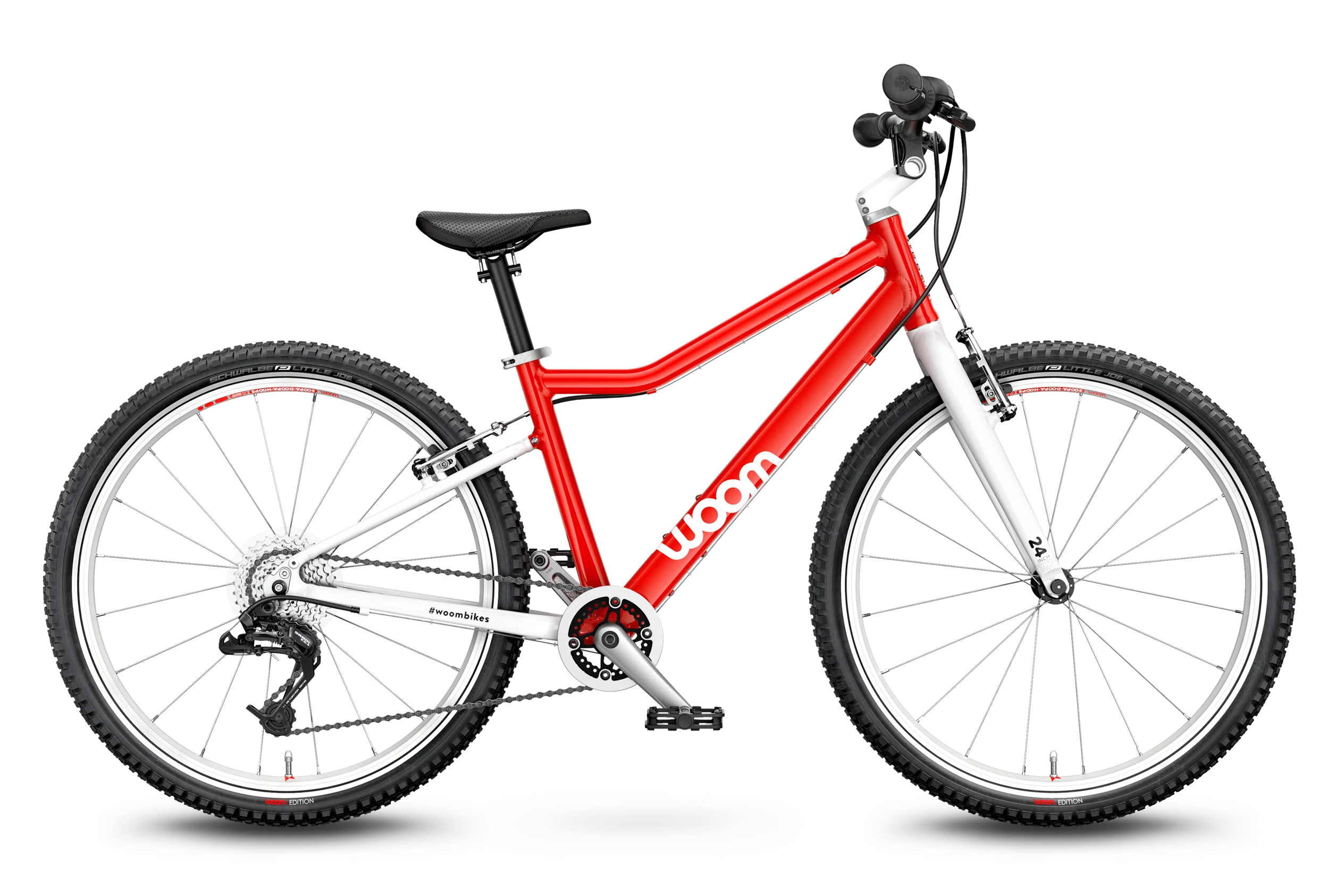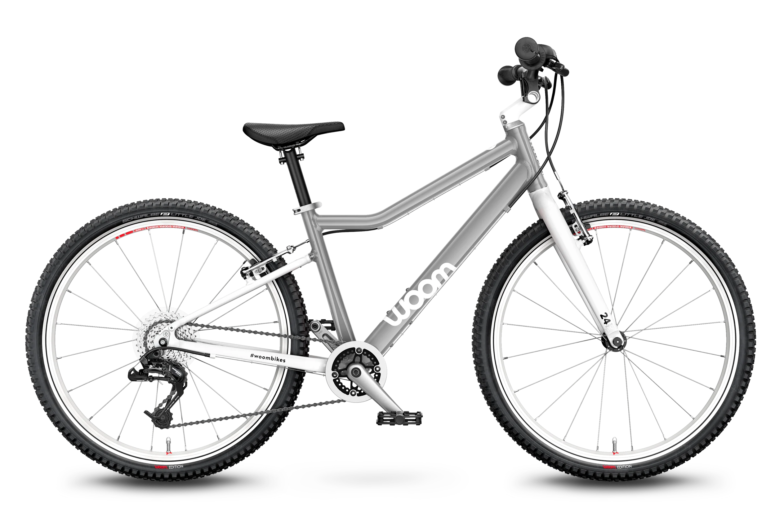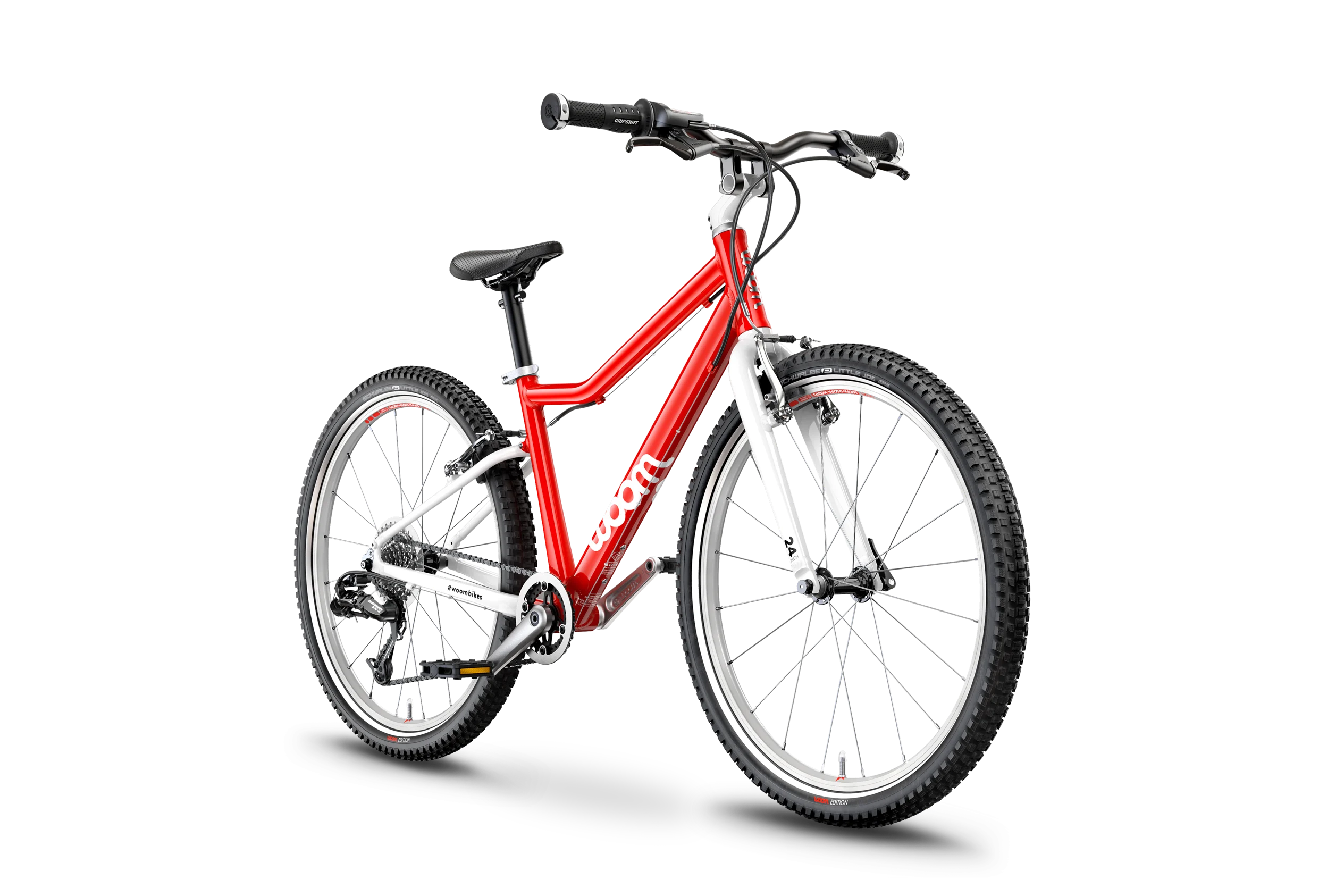 The woom 5 enables kids seven and up explore further than ever before. The grip shifter and gears make conquering that big hill in the neighborhood no problem. And racing friends down the street is easy with a ultralight frame and tailor-made wheels. No matter the trail, the woom 5 ensures a fun and safe ride!